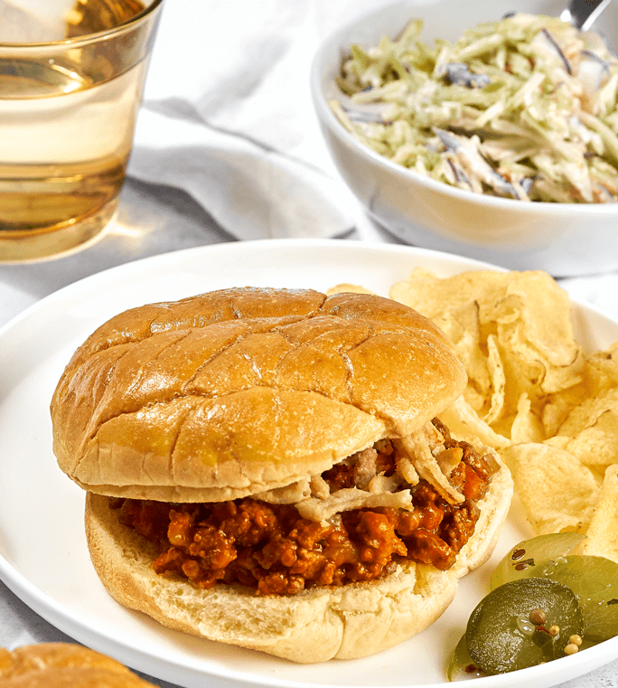 Scoop desired amount of the sloppy joey mixture on top of the toasted buns. Garnish with crispy onions and serve with your favorite side dish.