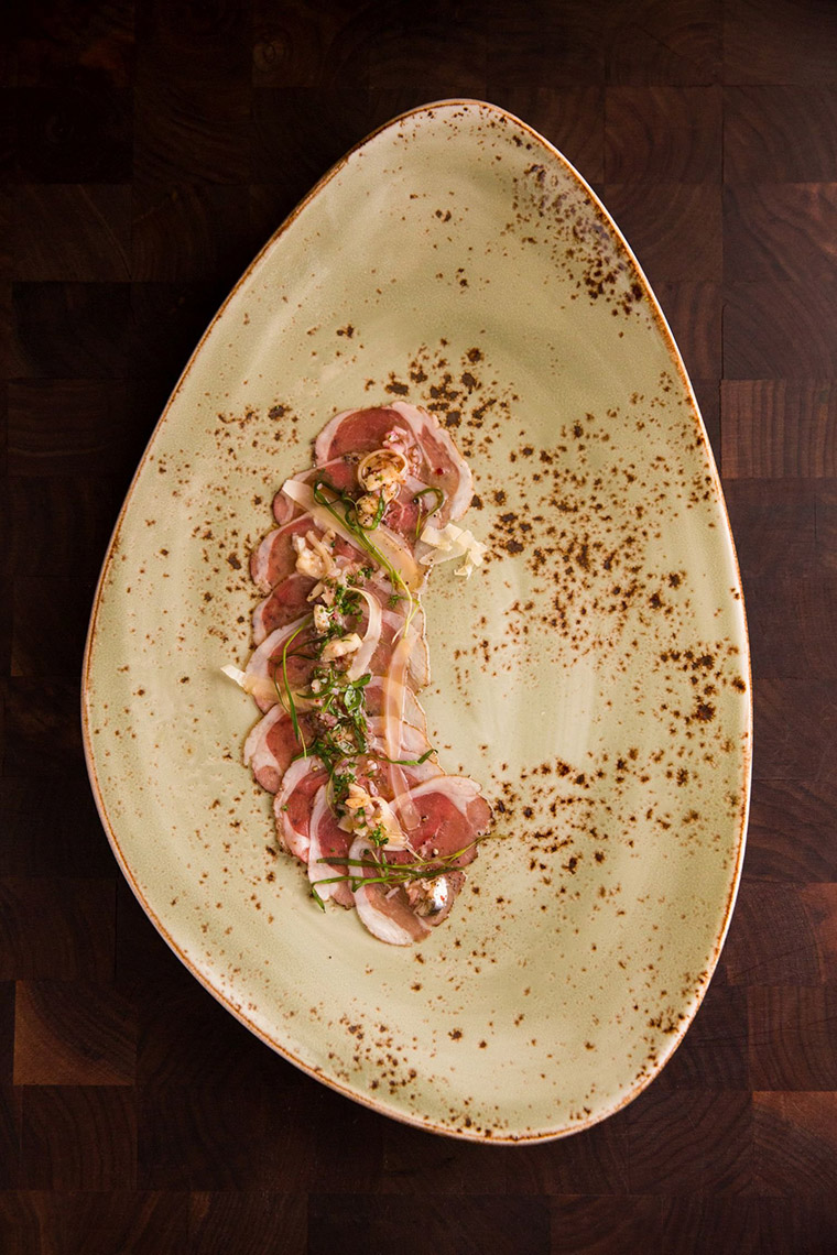 Australian lamb top sirloin carpaccio with white anchovy vinaigrette