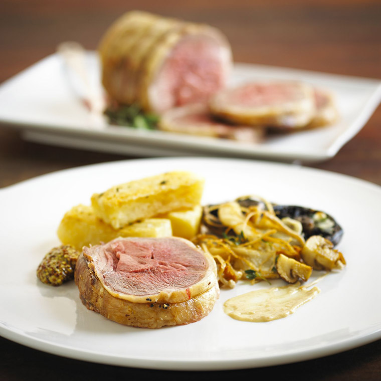 Serve Lamb in thick medallions with chips and mushrooms. Serve with mustard and